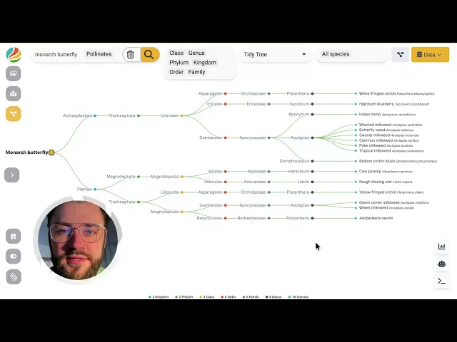 Nexus maps interactions between species across a range of ecological relationship types, including pollination, predation, co-occurrence, parasitism, and pathogen–host dynamics. Every relationship displayed in the module links back to its supporting academic source, providing transparency and traceability.