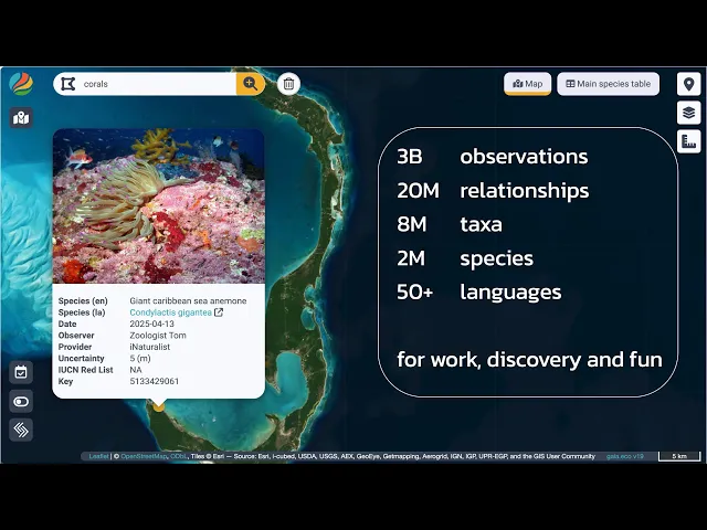 Educators can use gaia.eco to illustrate the complexity of species relationships and ecosystem dynamics. The platform provides a way to move beyond textbook diagrams and engage students with real ecological data, making abstract concepts like co-evolution and ecosystem services tangible.